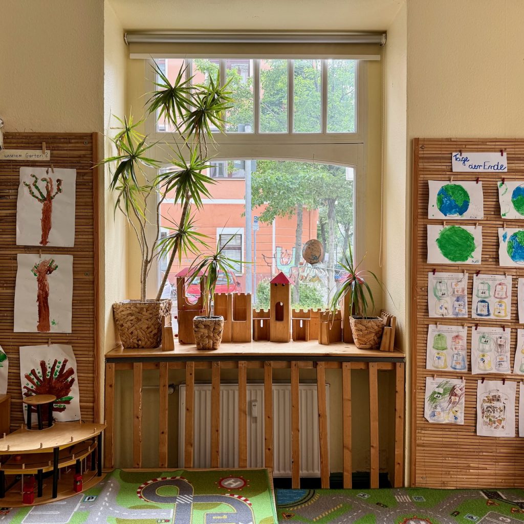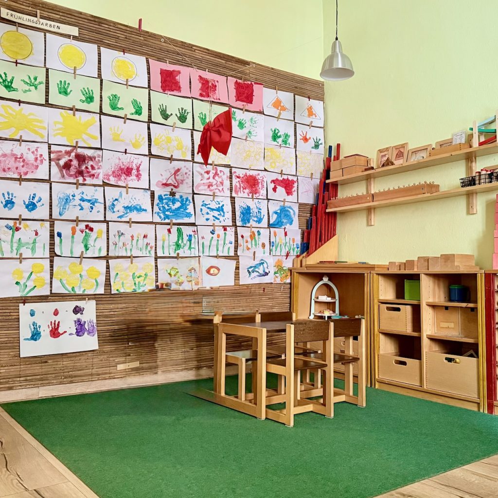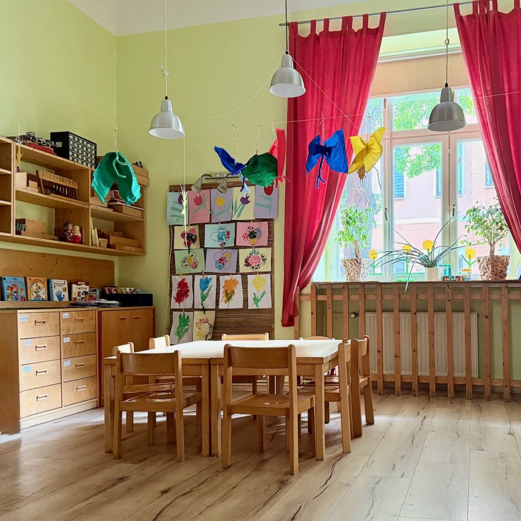 Unser Kindergarten befindet sich im Erdgeschoss und bietet 165 m² Spiel- und Lernfläche. Wir verfügen über drei Gruppenräume, eine geräumige Küche, ein Bad und Kreativ- und Bewegungsspielbereiche wie einen Kreativraum und verschiedene Spielbereiche (Puppenecke, Bauecke, Entspannungsecke, Leseecke, Brettspielecke, Forscherecke, Montessori-Ecke, Sportecke und Bewegungsecke).