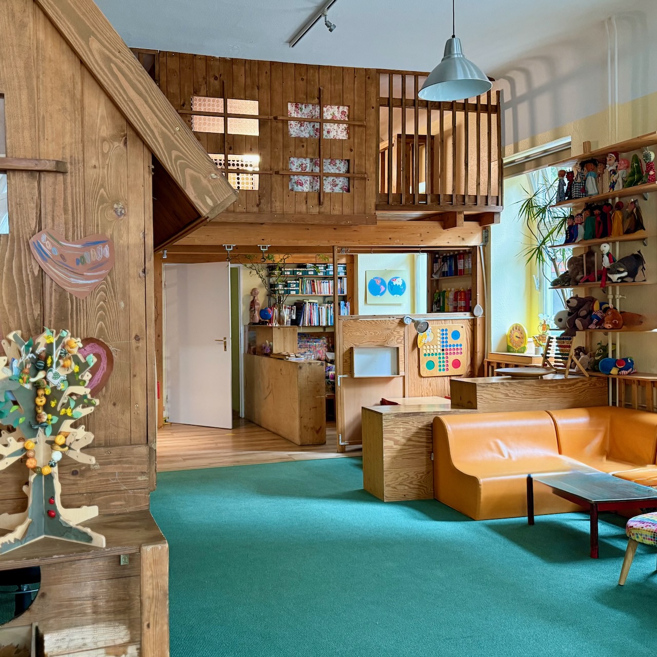 Unser Kindergarten befindet sich im Erdgeschoss und bietet 165 m² Spiel- und Lernfläche. Wir verfügen über drei Gruppenräume, eine geräumige Küche, ein Bad und Kreativ- und Bewegungsspielbereiche wie einen Kreativraum und verschiedene Spielbereiche (Puppenecke, Bauecke, Entspannungsecke, Leseecke, Brettspielecke, Forscherecke, Montessori-Ecke, Sportecke und Bewegungsecke).